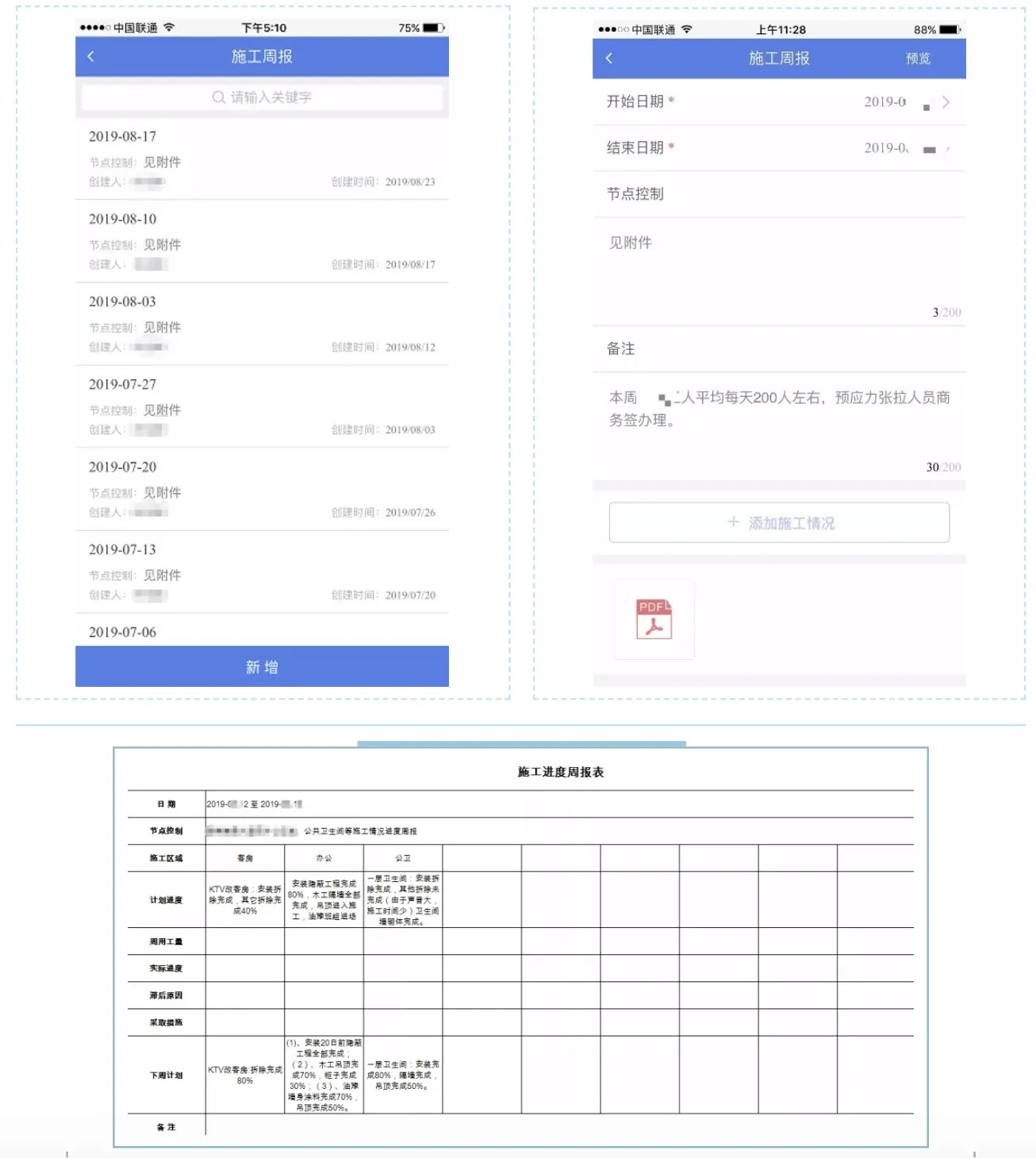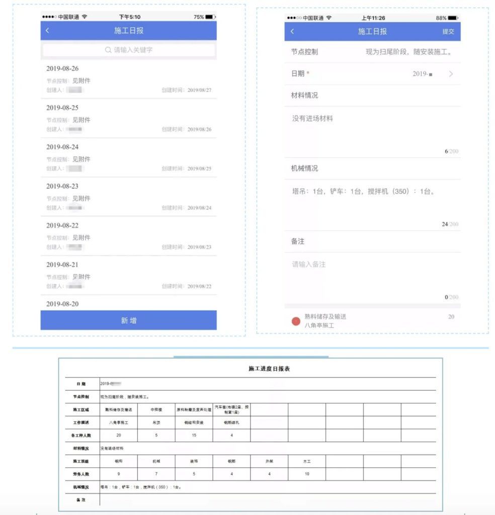 施工日報、施工週報、項目晨會
